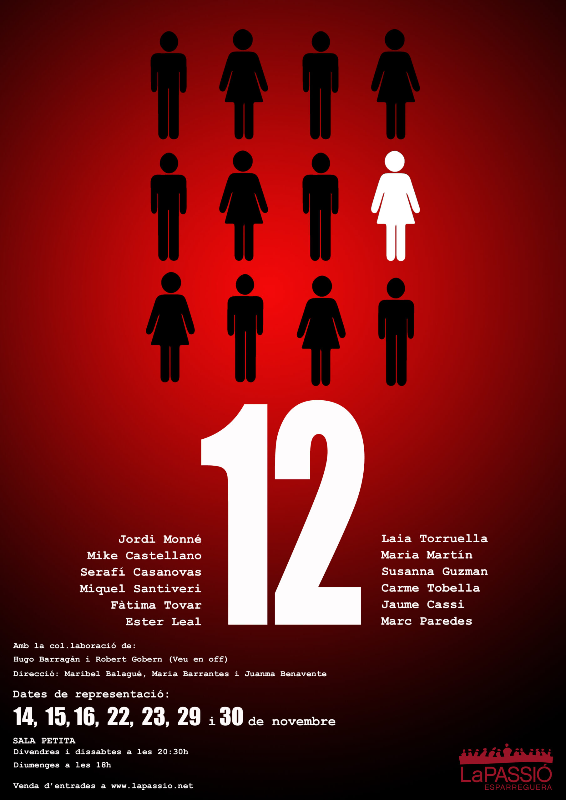 14, 15, 16, 22, 23, 29 i 30 de NOVEMBRE, divendres i dissabtes a les 20.30h i diumenges a les 18h, Sala Petita del Teatre de La Passió d’Esparreguera.