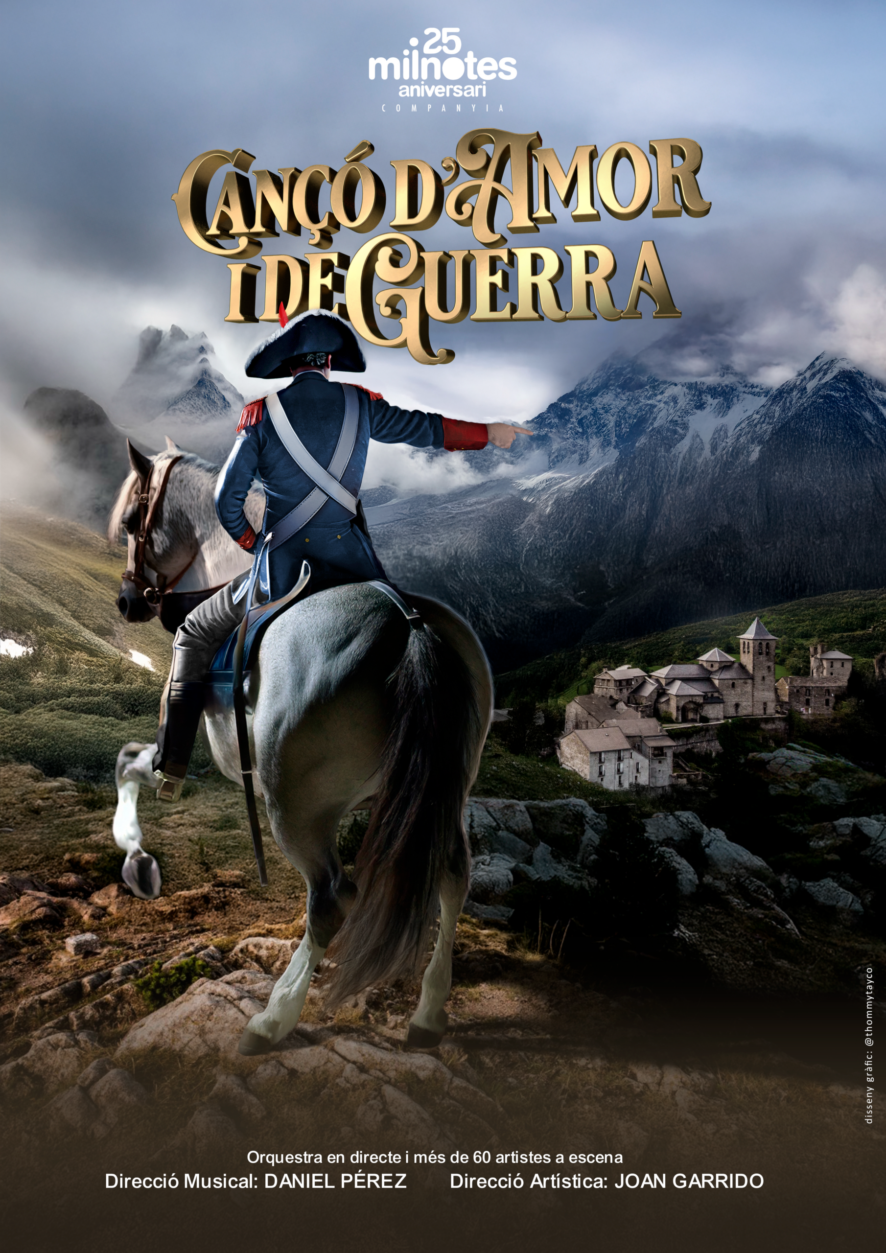 Cançó d’amor i de guerra és una sarsuela catalana emblemàtica que combina emoció, passió i compromís amb la llibertat. Ambientada al Vallespir durant l’ocupació napoleònica, l’obra narra la lluita d’un poble dividit entre l’amor i la resistència. Milnotes Produccions presenta una relectura escènica rigorosa i emotiva, respectuosa amb l’essència original però renovada en el llenguatge visual i teatral.
