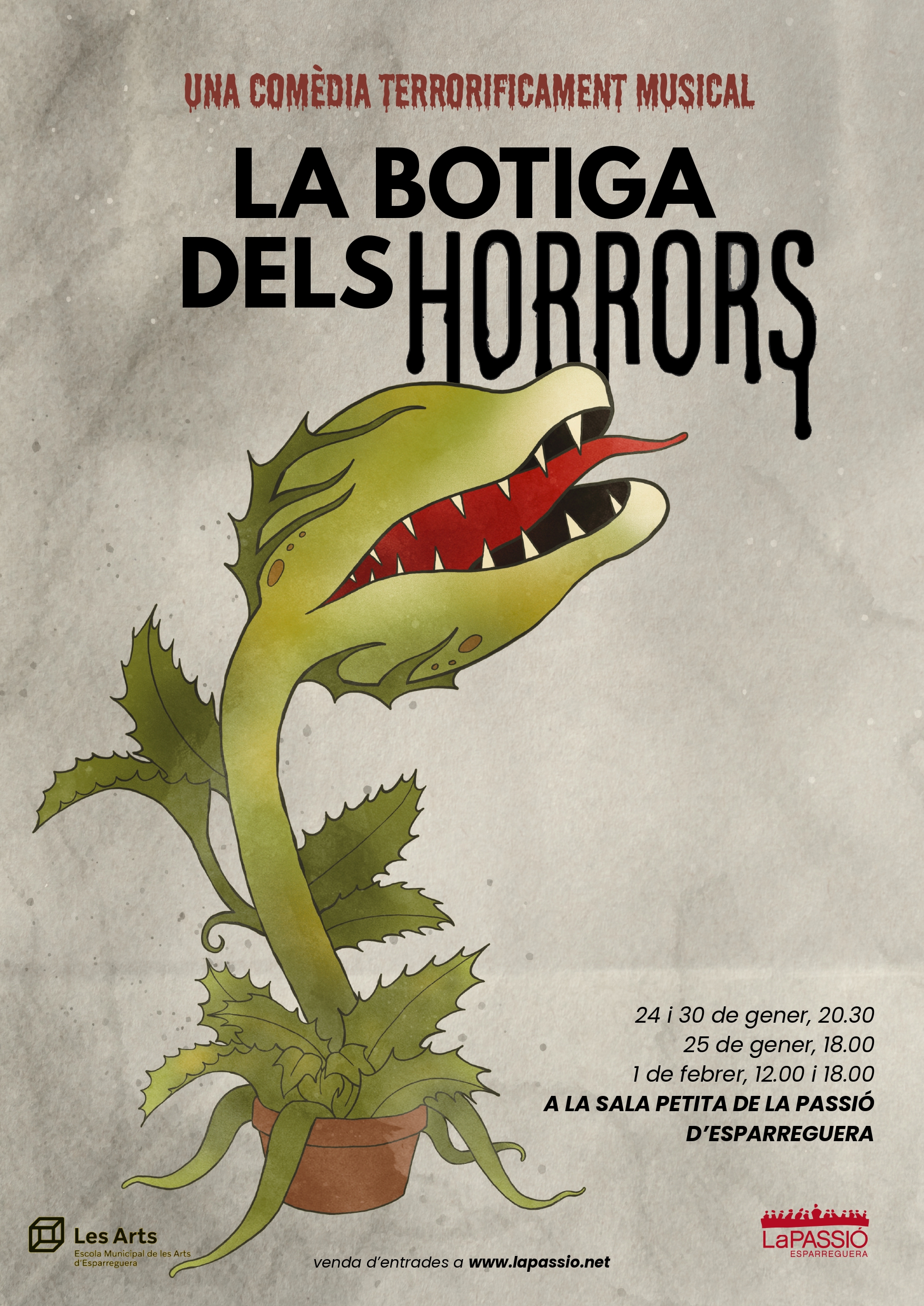 El musical més suculent, divertit i afamat arriba a Esparreguera! Aquesta producció d’èxit es va estrenar a Catalunya l’any 1987 amb l’esparreguerina, Lola Lizaran, en el repartiment. “Little Shop of Horrors” és un clàssic indispensable de Broadway i el West End que ha fet riure, cridar i deixar la jardineria per sempre a milions d’espectadors…!